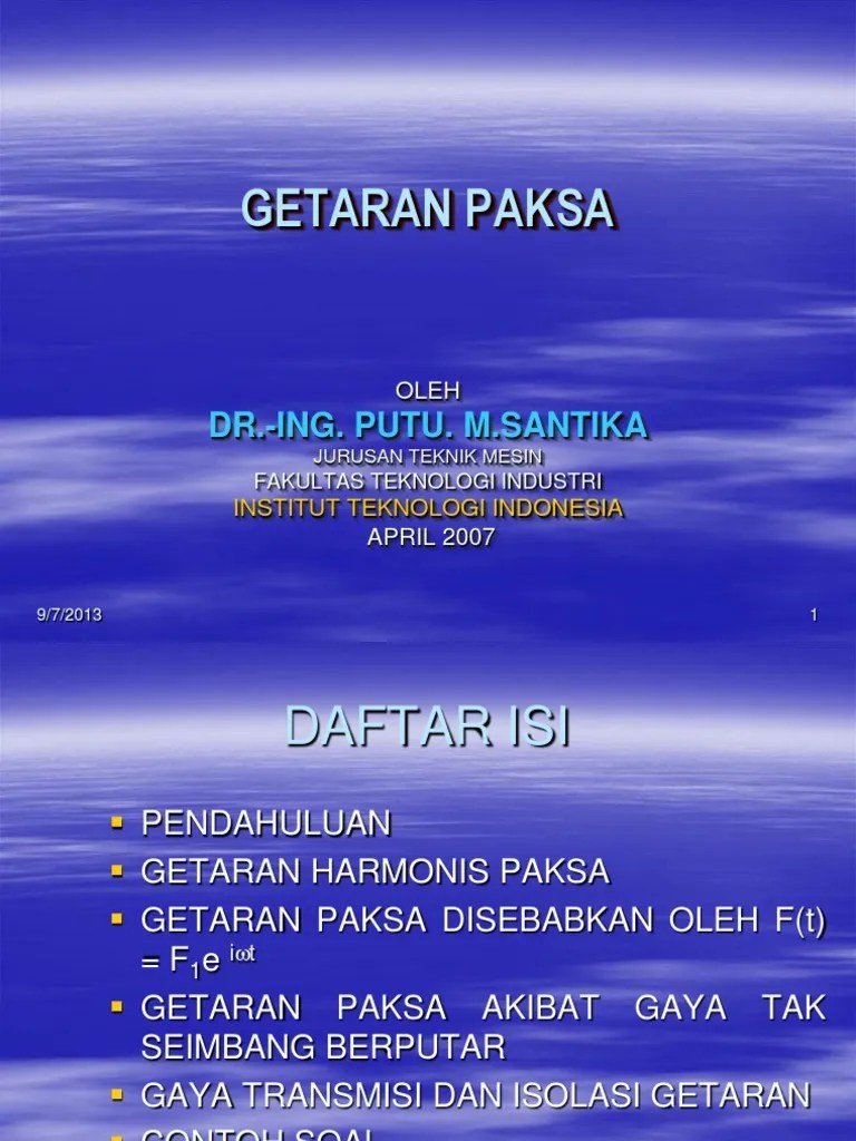 Yang dapat dipakai untuk menguji diri mengenai penguasaan materi yang. Contoh getaran deterministik adalah getaran harmonik, getaran sinusoidal dan getaran periodik. Contoh dari getaran nonmekanis di antaranya adalah getaran pada medan listrik dan medan. Dari gambar 2.9 di atas, maka akan didapatkan matriks dari persamaan gerak dengan menggunakan hukum newton kedua . Sebuah bandul dengan massa m dilepaskan setelah diberi .